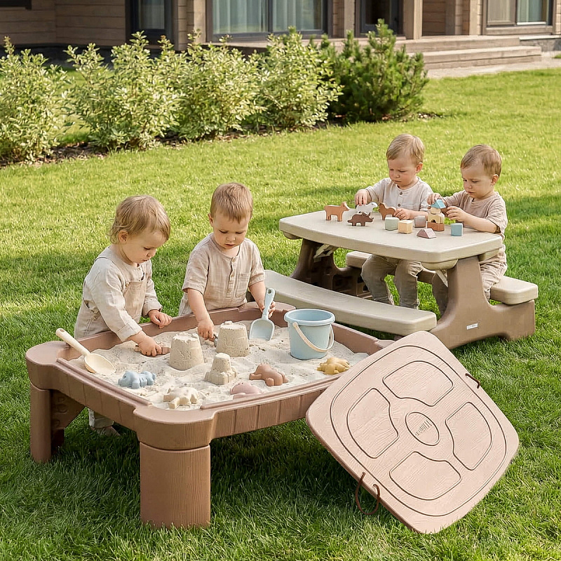 Компактные размеры в собранном виде позволяют разместить конструкцию как на улице, так и внутри помещения, делая её идеальным решением для загородных домов, дачных участков и квартир. Песочница для малышей подходит и для путешествий, обеспечивая дополнительное свободное время родителям и подарив детям незабываемые моменты веселья и творчества.