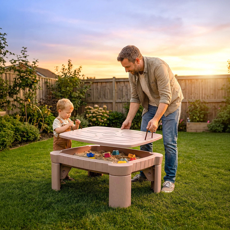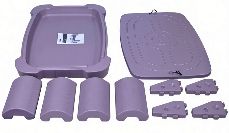 Крышка домашней / уличной песочницы оснащена удобными ручками, позволяющими легко закрывать изделие, защищая содержимое от влаги и загрязнений. Сборка проста и доступна каждому взрослому, не требует специальных инструментов и навыков, занимает минимум времени и усилий.