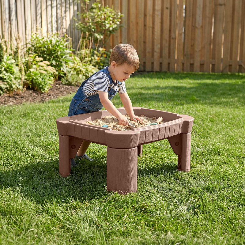 Высокие бортики 8 см предотвращают рассыпание песка или розлив воды наружу, позволяя ребенку играть без ограничений пространства. Благодаря удобной высоте ножек 30 см, дети смогут комфортно играть вокруг песочницы стоя или сидя. Размер поля для наполнения 82,5 × 57 см обеспечит достаточно места для веселых детских забав. Максимальная вместительность достигает 35 кг песка (около 24 литров).