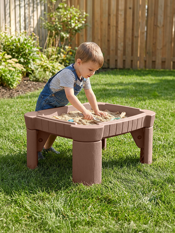 Высокие бортики 8 см предотвращают рассыпание песка или розлив воды наружу, позволяя ребенку играть без ограничений пространства. Благодаря удобной высоте ножек 30 см, дети смогут комфортно играть вокруг песочницы стоя или сидя. Размер поля для наполнения 82,5 × 57 см обеспечит достаточно места для веселых детских забав. Максимальная вместительность достигает 35 кг песка (около 24 литров).
