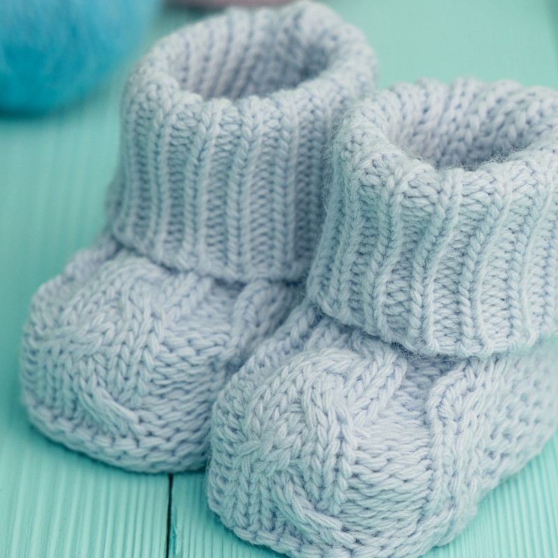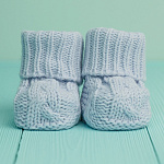 Детские вязаные пинетки будут находкой для мамы в любое время года. Вязка выглядит стильно и напоминает плотную фактурную ткань. Модель хорошо тянется, не давит на ножки, широкий отворот мягко обнимает ножку и добавляет мягкости. Пинетки красиво смотрятся и сохранят ножки в тепле.