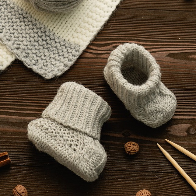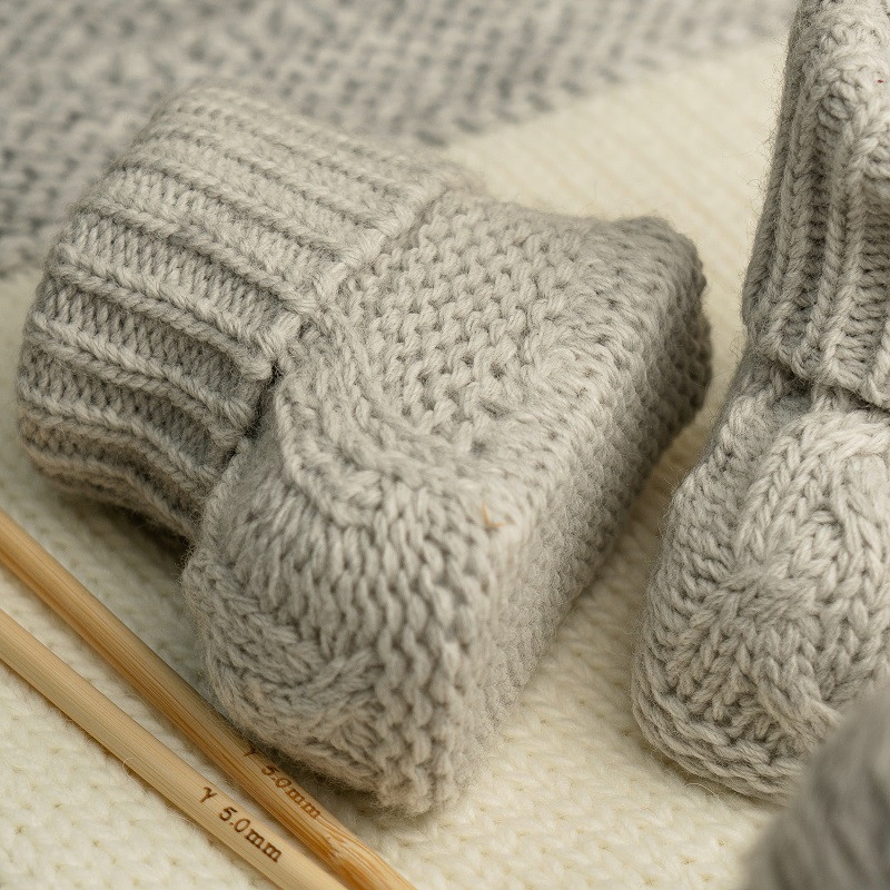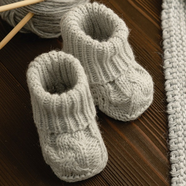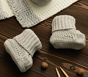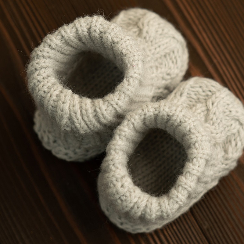 Детские вязаные пинетки будут находкой для мамы в любое время года. Вязка выглядит стильно и напоминает плотную фактурную ткань. Модель хорошо тянется, не давит на ножки, широкий отворот мягко обнимает ножку и добавляет мягкости. Пинетки красиво смотрятся и сохранят ножки в тепле.