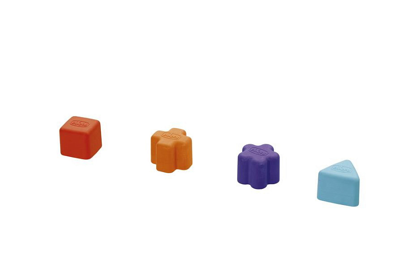 2. Сортер: 4 формы различных цветов, которые нужно вставить в правильный паз.