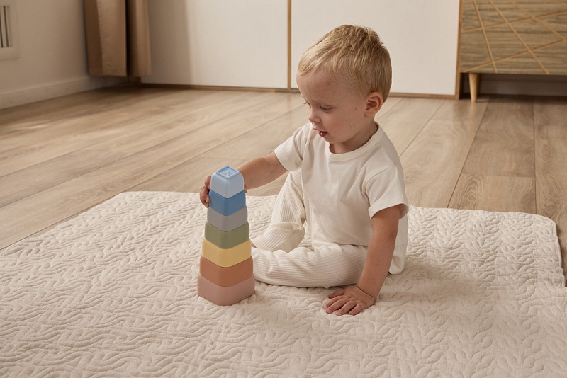 - Веселые игры, простота в уходе — в наборе есть стаканчики с дырочками: так играть с пирамидкой в воде или песке еще интереснее, например в дождик. Пирамидку легко промыть, стерилизовать или прокипятить.