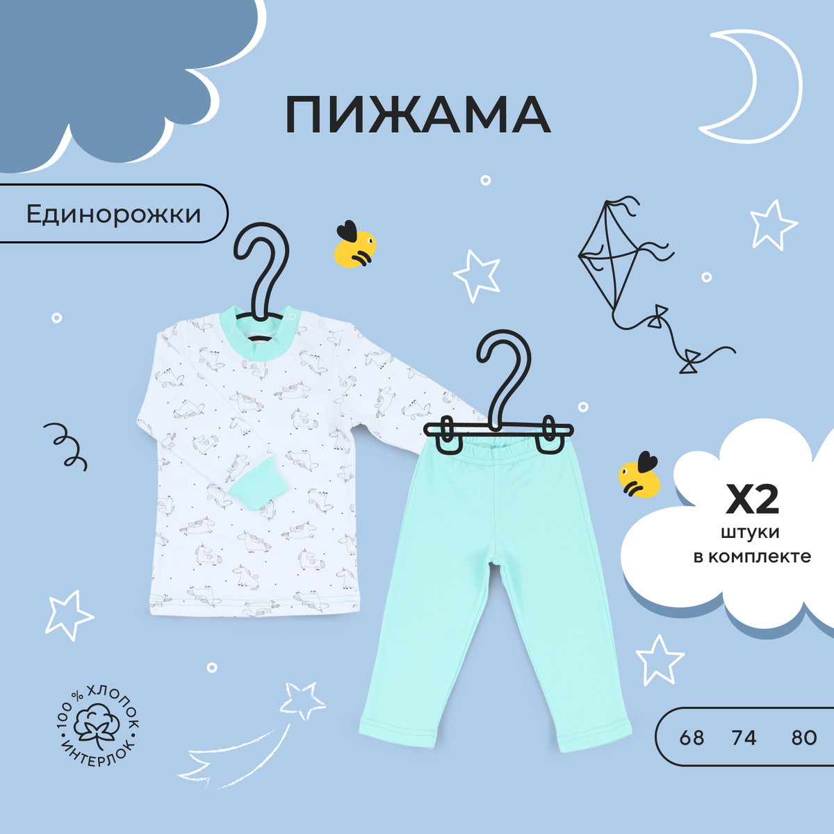 Трогательная коллекция Единорожек подарит вам самые нежные ощущения от использования. Базовые изделия из готового набора помогут с легкостью сочетать предметы гардероба между собой. Прибавьте к этому сказочный контурный принт, актуальные цвета, лаконичное исполнение, комфортное лекало, качественную фурнитуру в тон и хлопок премиум класса (интерлок-пенье).