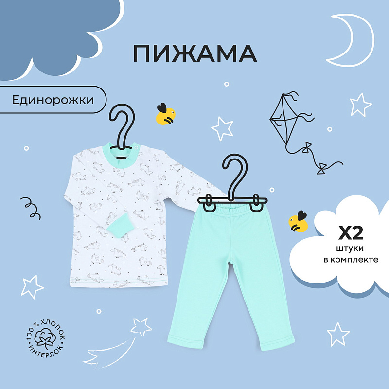 Пижама Rant basic Единорожки длинный рукав 11284 Mint 74