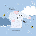 Очаровательная пижамка поможет малышу плавно погрузиться в сладкий сон. Мягкая резиночка, которой дополнены штанишки, не будет давить на крохотный животик. А кнопочки, которыми обеспечена горловина лонгслива, помогут беспрепятственно переодевать ребенка.