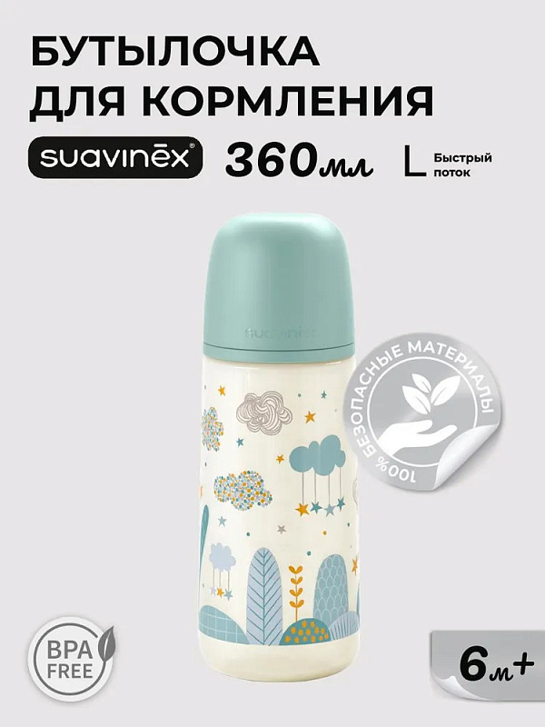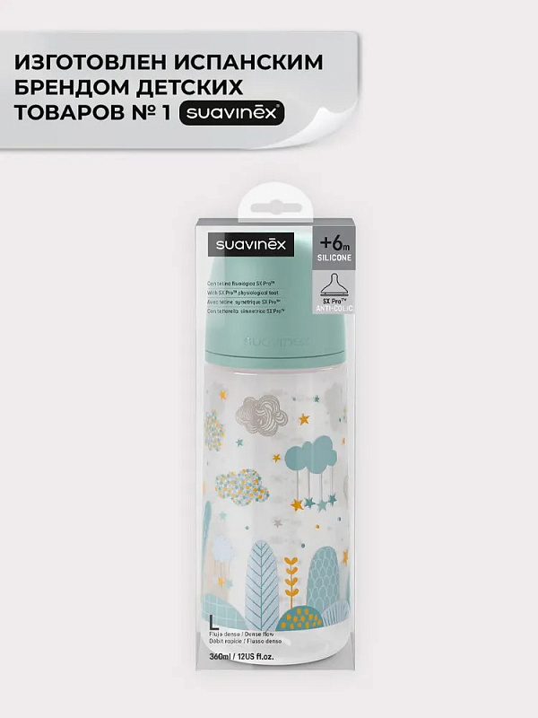 Пластиковая бутылочка Suavinex Dreams Anti-Colic быстрый поток, 360 мл, 6 мес 308326 BLUEНет оценокХарактеристики