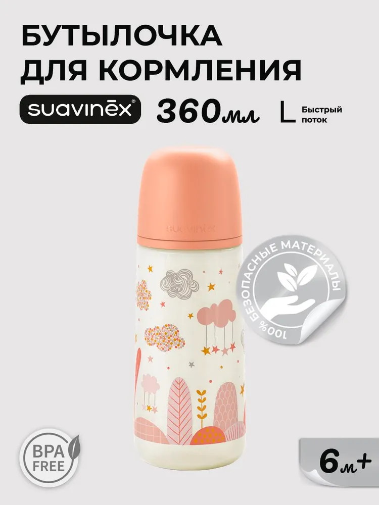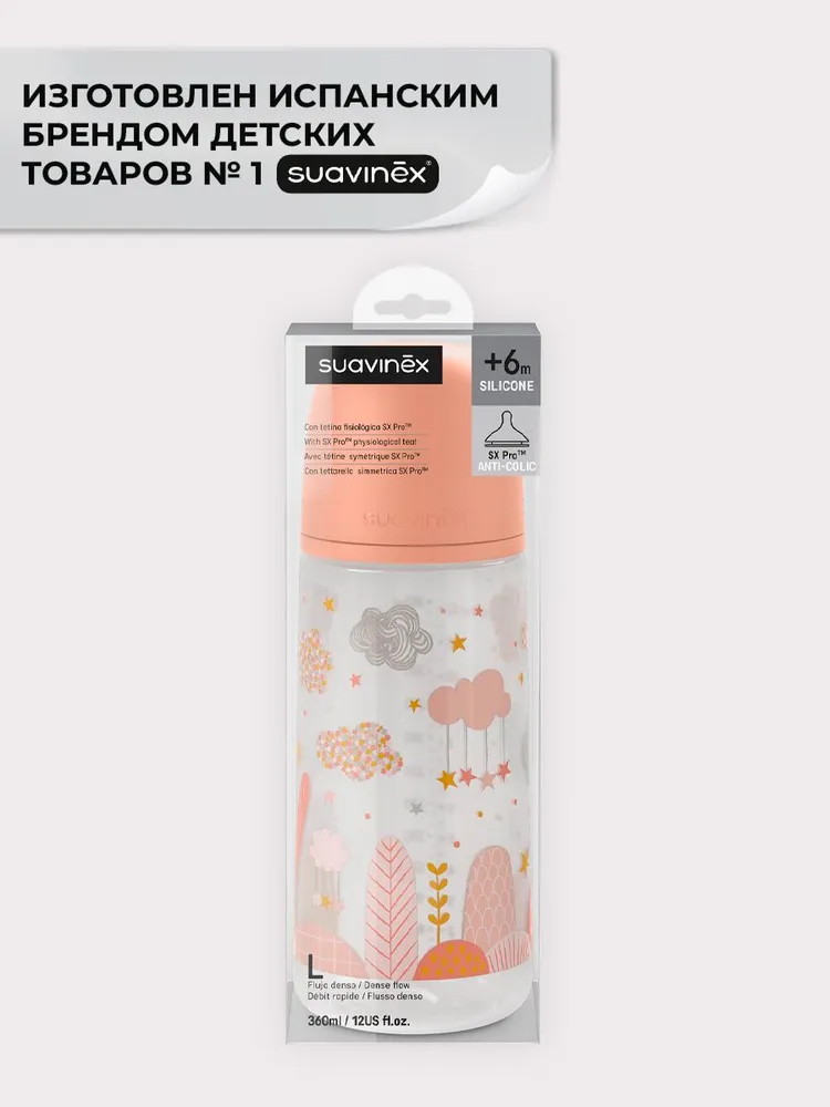 Пластиковая бутылочка Suavinex Dreams Anti-Colic быстрый поток, 360 мл, 6 мес 308327 PINKНет оценокХарактеристики
