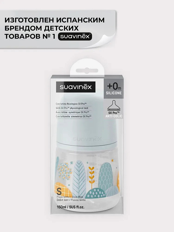 Пластиковая бутылочка Suavinex Dreams Anti-Colic медленный поток, 150 мл, 0+ 308316 BLUEНет оценокХарактеристики