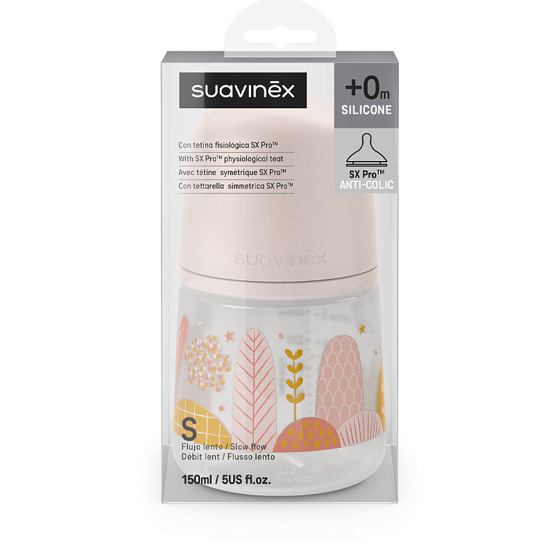 Антиколиковая бутылочка Suavinex с силиконовой физиологической соской SX Pro делает процесс кормления максимально естественным и помогает предотвратить возникновение коликов.