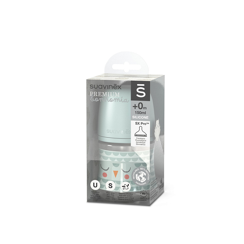 Бутылочка Suavinex премиум-класса с физиологической соской SX Pro из коллекции Bonhomia Premium. Она разработана с учетом орального развития вашего ребенка. Отверстие в соске пропускает небольшое количество жидкости. Идеально подходит для первых дней жизни новорожденного.