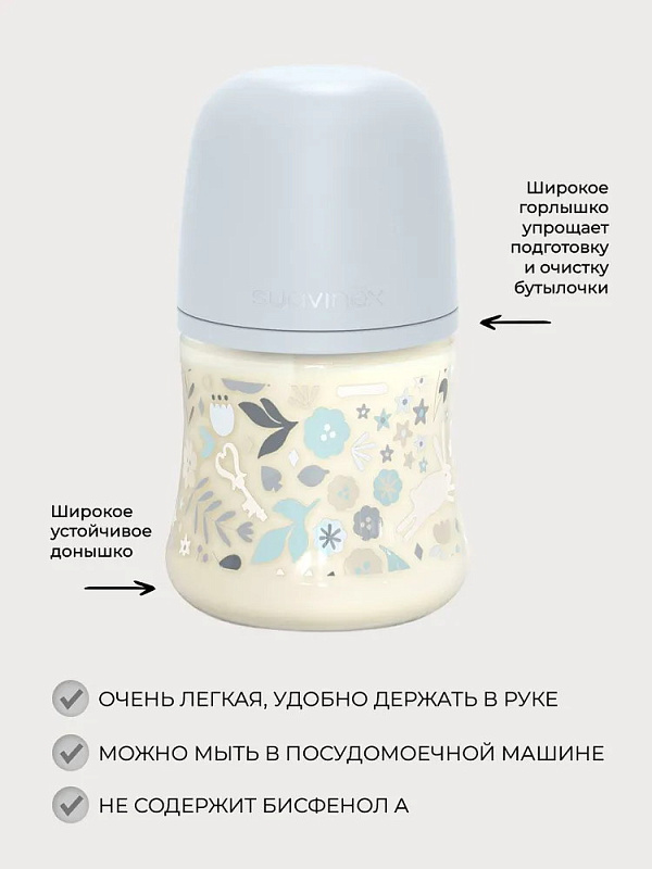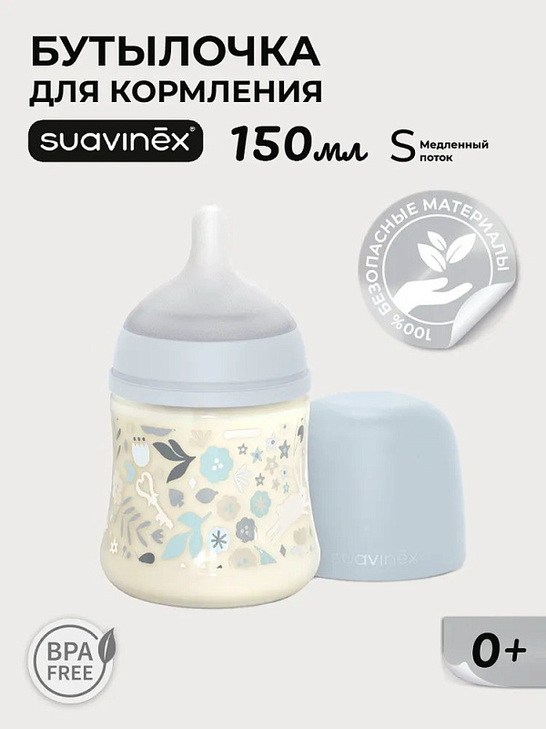 Пластиковая бутылочка Suavinex Wond для детского питания 150 мл 308743 LIBERTY BLНет оценокХарактеристики