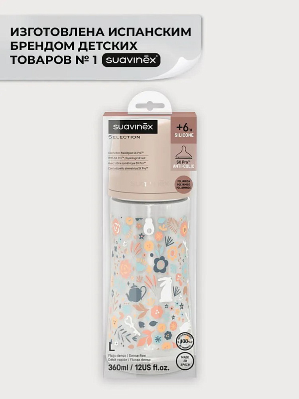 Пластиковая бутылочка Suavinex Wond для детского питания 360 мл 308754 LIBERTY PKНет оценокХарактеристики