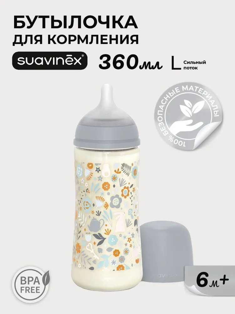 Пластиковая бутылочка Suavinex Wond для детского питания 360 мл 308755 LIBERTY BLНет оценокХарактеристики
