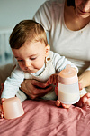 - Полностью имитирует кормление грудью за счет анатомической формы соски, мягкого, приятного на ощупь силикона, и конструкции с широким горлышком