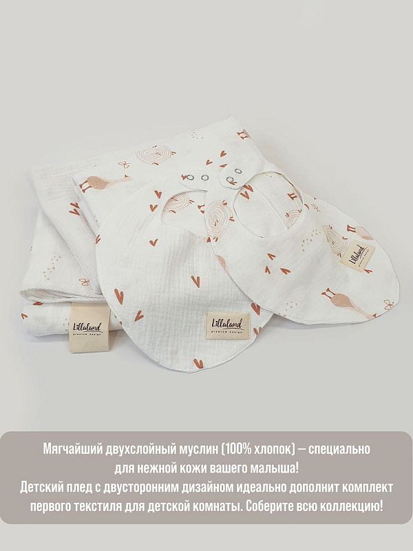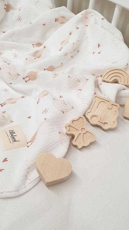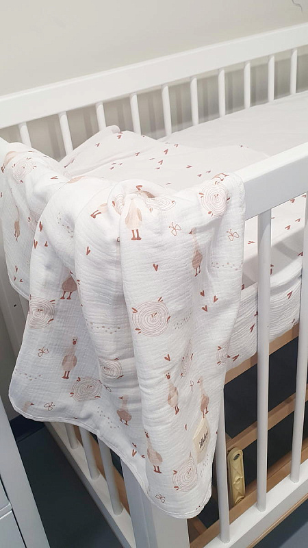 Муслиновый плед "Любовь и Гуси" для вашего малыша. Откройте мир нежности и тепла с нашим муслиновым пледом "Любовь и Гуси", специально разработанным для окутывания вашего новорожденного малыша в ласковые объятия.