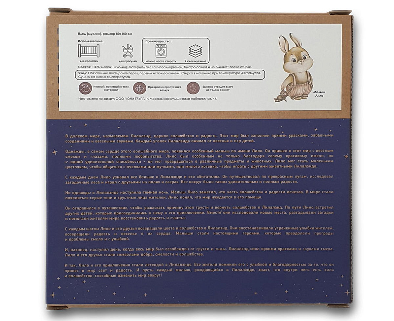 Плед "Любовь и Гуси" упакован в красивую коробку, что делает его прекрасным подарком для малыша.