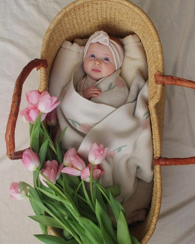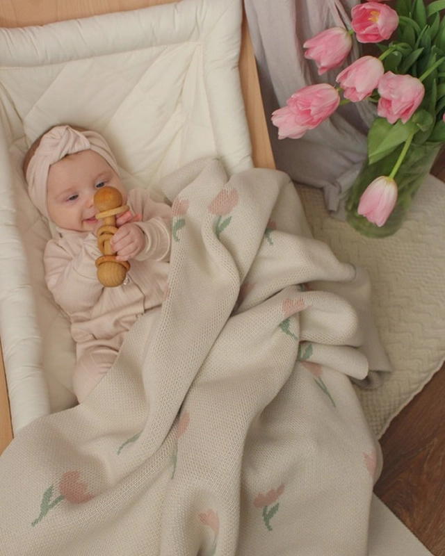 Плед детский Loomknits Flowers Tulip Топленое молоко