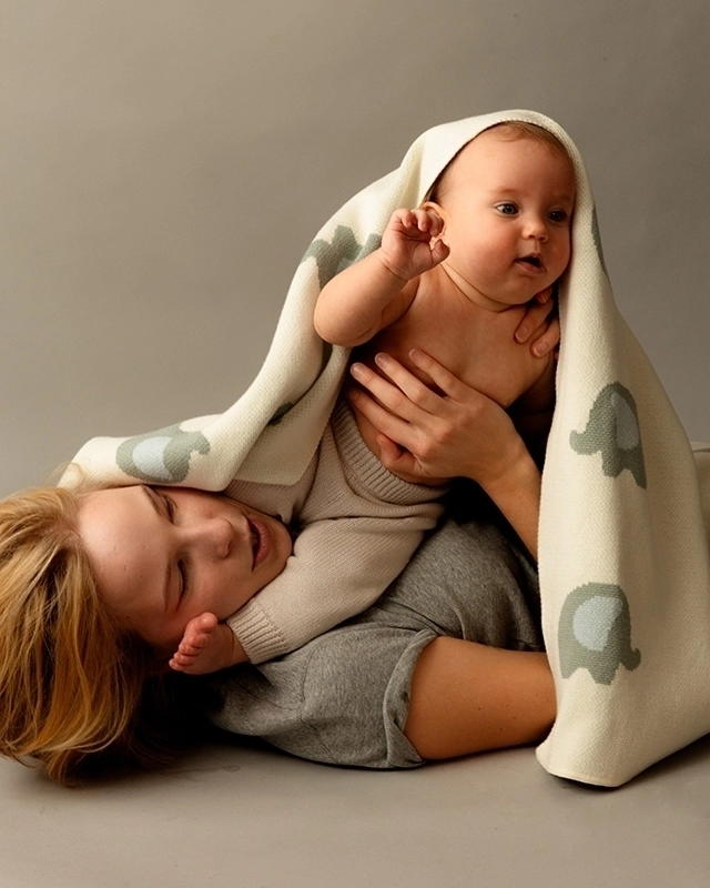 Вязаный плед со слониками подарит малышам неограниченный запас смешинок и улыбок даже в самый хмурый день. Всё просто — маленькие хоботки забавно дышат и щекочат малыша до хохота.