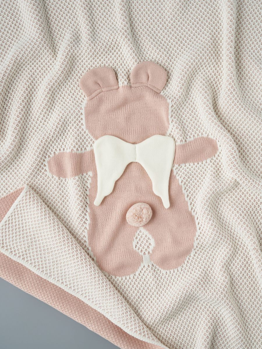 Плед двойная вязка Little Star Мишка Ангел 90*90 пудра 13/крем