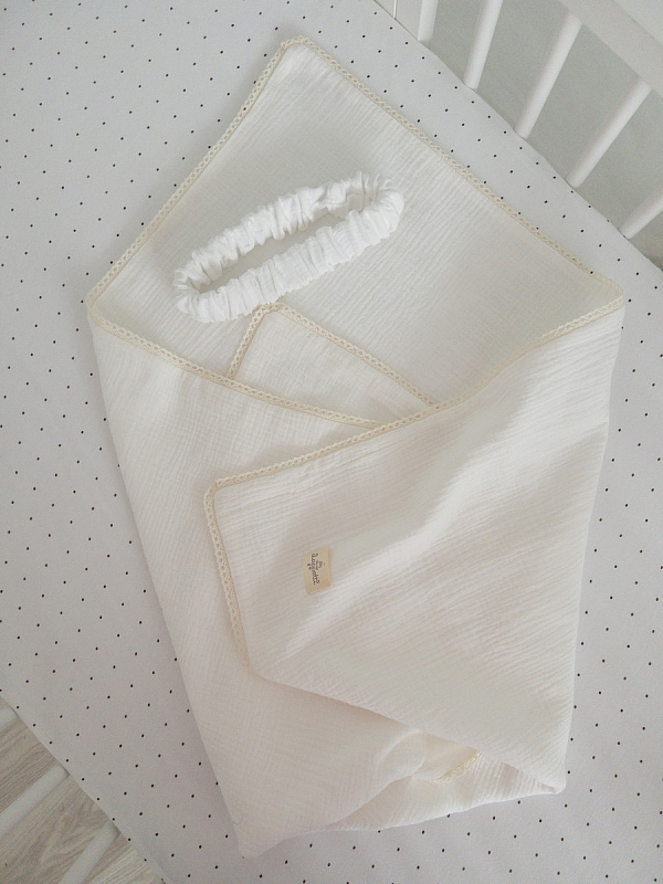 Помимо кружева, плед Lappetti оснащен пояском на резинке. Это удобное решение, которое позволяет легко закрепить плед в желаемом положении, а также использовать его в качестве пеленки или покрывала.