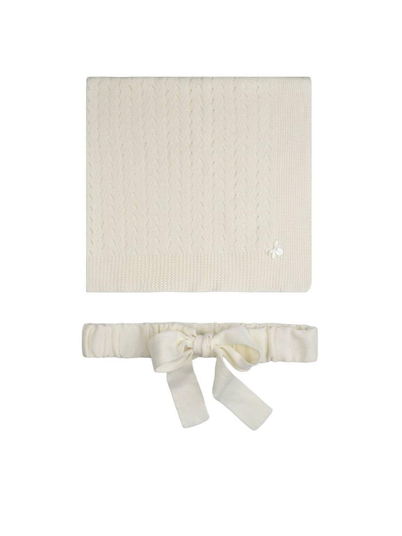 Плед и пояс "Колосок" выполнены в спокойном бежевом цвете, который легко сочетается с различными интерьерами и гардеробом. Размер изделия — 95х95 р., что делает его удобным для использования дома или на прогулке. Плед связан из мягкого материала с ажурным узором, напоминающим колоски, что придает изделию элегантный и аккуратный вид. Текстура полотна ровная и приятная на ощупь, края аккуратно обработаны. В углу пледа расположен небольшой вышитый декор, что добавляет изделию индивидуальности. Пояс выполнен из того же материала, что и плед, оформлен аккуратным бантом, что позволяет использовать его как декоративный аксессуар или для фиксации пледа. Благодаря универсальному дизайну, плед и пояс "Колосок" подойдут для детей и взрослых. Комплект станет отличным решением для создания уюта дома, а также пригодится в качестве стильного аксессуара на фотосессиях.