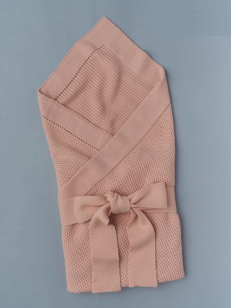 Плед вязаный и лента Little Star Классика 90х90 см пудра/сухая роза