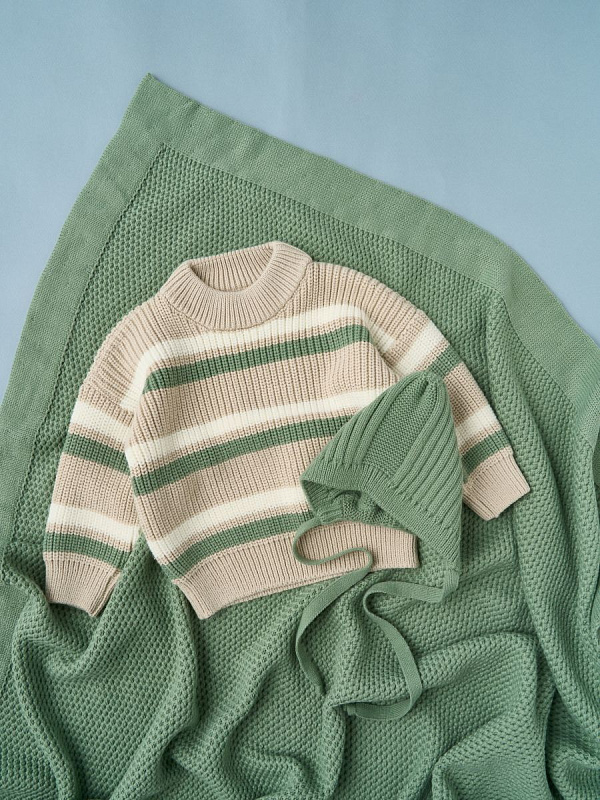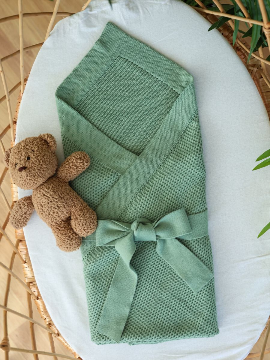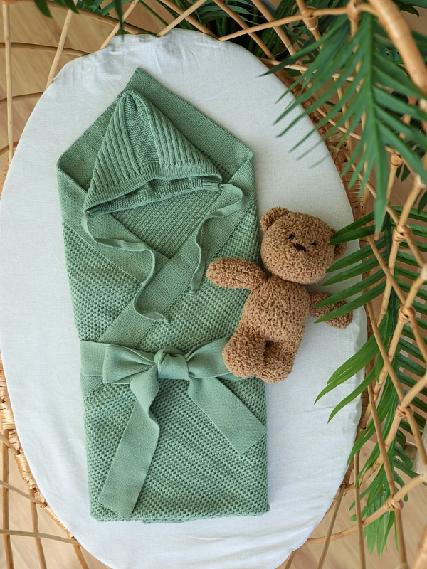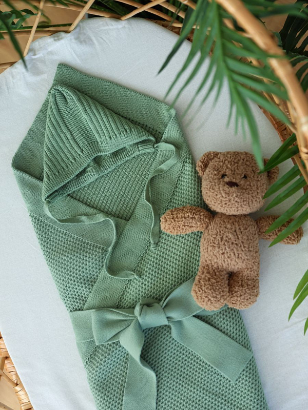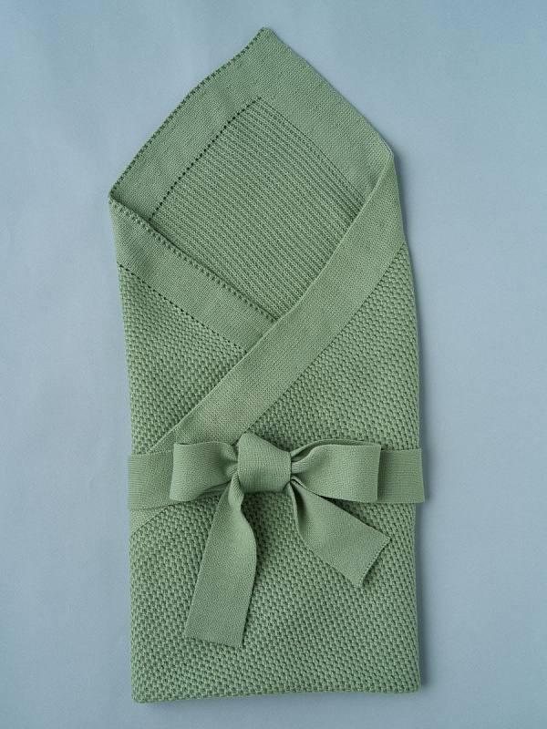 Плед вязаный и лента Little Star Классика 90х90 см серо-зеленый