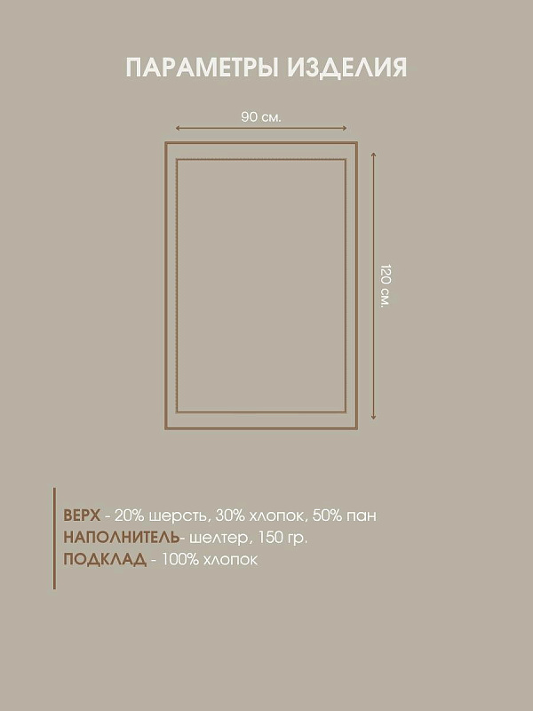 Материал изготовленияшерсть 20%, хлопок 30%, ПАН 50%, наполнитель шелтер 150гр, подкладка хлопок 100%