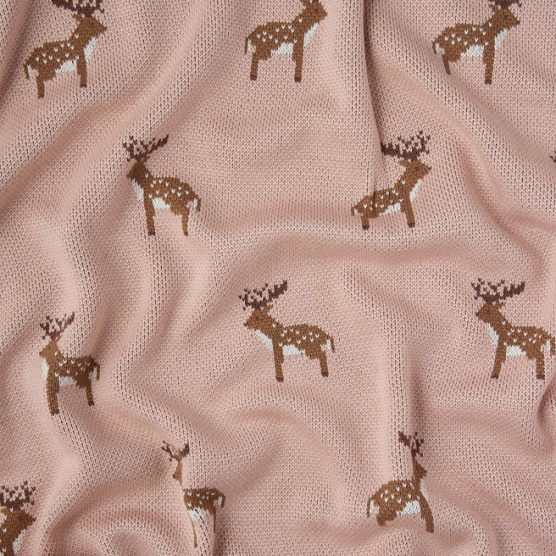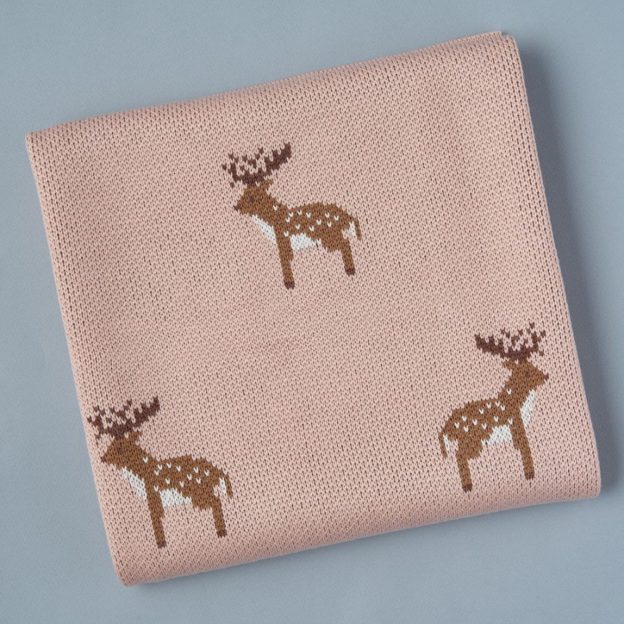 Плед вязаный Little Star Олени 100х100 см пудра
