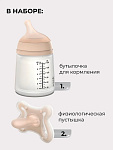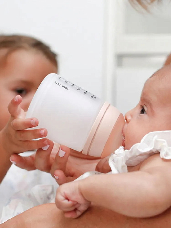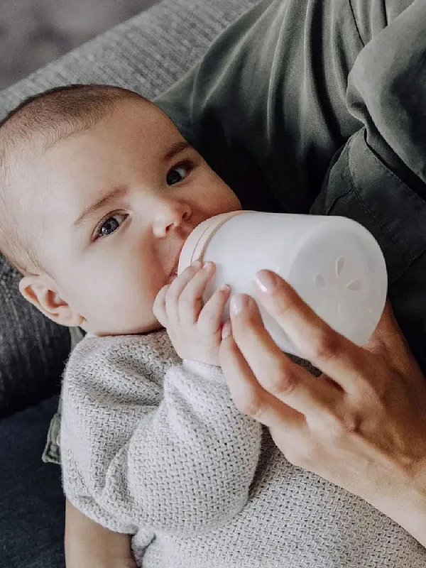 Бутылочка оснащена уникальным антиколиковым силиконовым мешочком, который сжимается в процессе кормления, предотвращая попадание лишнего воздуха и создавая физилогичное давление при сосании, схожее с материнской грудью. Этот механизм позволяет снизить возникновение коликов, а также риск дискомфорта и неприятных ощущений после еды.