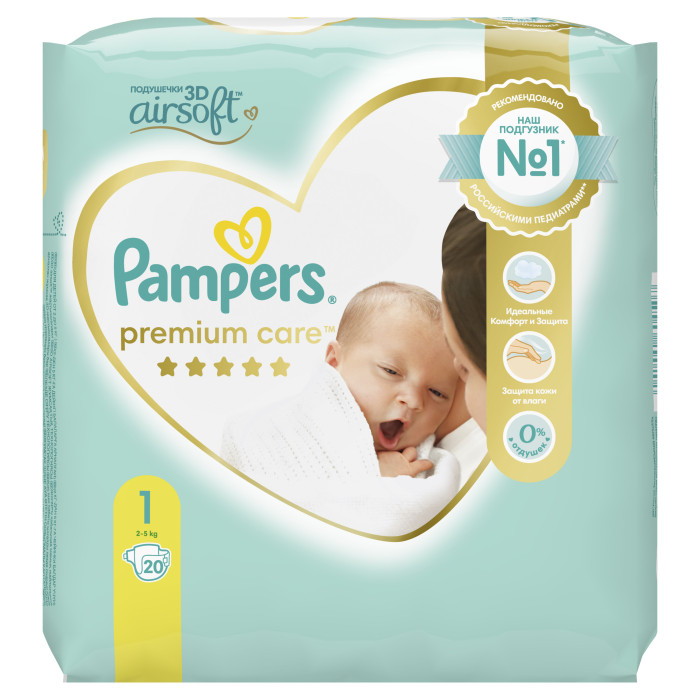 Pampers Premium Care - №1 подгузники для новорожденных в России*. Мягкие, воздушные и сухие, окружают кожу вашего малыша облаком комфорта! Дарят нежной коже новорожденного малыша комфорт и защиту.