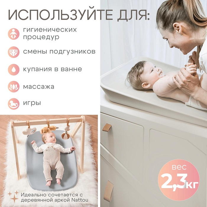 Подложка-матрасик Nattou пеленальная 68,5x48x7,5 см beige 145060Нет оценокХарактеристики