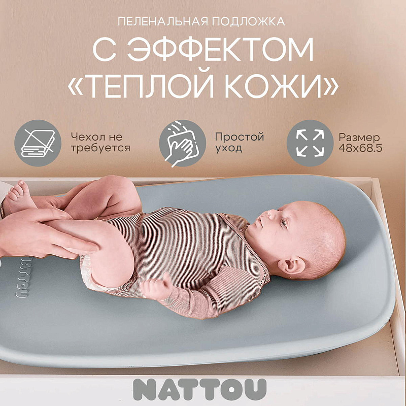 Подложка-матрасик Nattou пеленальная 68,5x48x7,5 см grey 145046