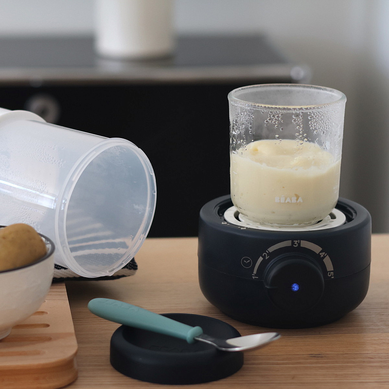BEABA Baby Milk Second 2 в 1 — ультрабыстрый подогреватель воды и детских смесей с функцией стерилизатора. Запатентованная система парового нагрева позволяет достичь идеальной температуры воды за 2 минуты и подогреть пюре — за 5 минут.