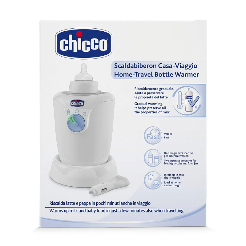 Беспроблемно нагреть питание младенца до нужной температуры поможет подогреватель для бутылочек Chicco Travel, купить который по оптимальной цене вы можете на нашем сайте. Совместим с посудой как бренда Чико, так и других производителей.