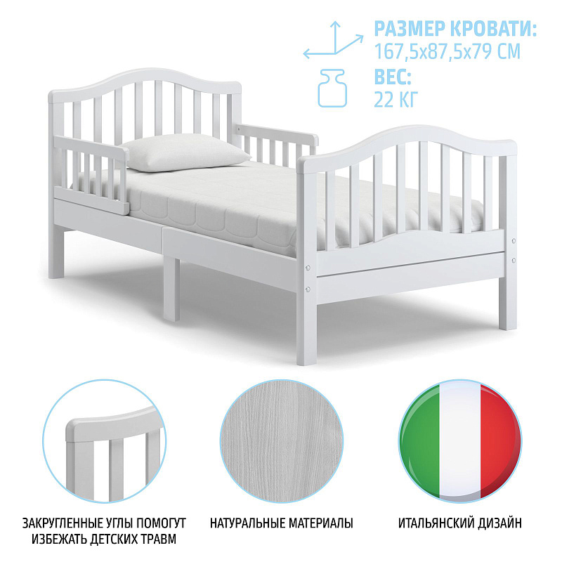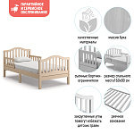 Красивая и стильная модель с волнообразными решетчатыми спинками представлена в нескольких цветовых вариантах и идеально впишется в интерьер детской. Она выполнена из натурального дерева, бука, и обеспечит ребенку здоровый и безопасный сон.