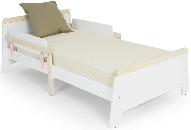 - Подростковая кровать имеет дополнительные бортики, которые можно закрепить в изголовье, ближе к ногам или поставить на одну сторону