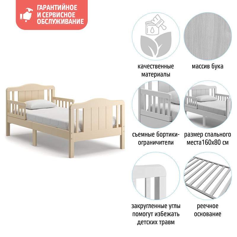 Полностью выполненная из дерева стильная и презентабельная кровать станет настоящим украшением детской комнаты и обеспечит безопасный и здоровый сон ребенка. Предназначена для деток от 3 лет до достижения ими подросткового возраста.