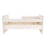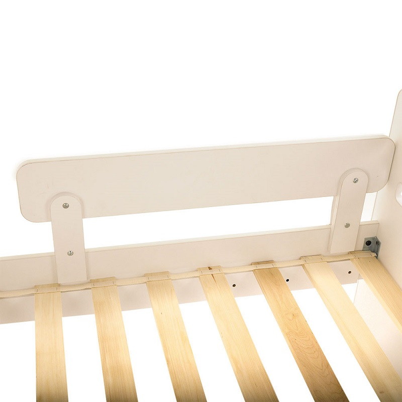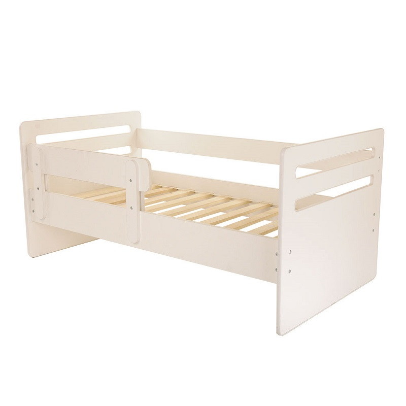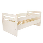 Кровать для подросткового возраста, выполнена из ЛДСП класса Е1, обработка кант, реечное дно (массив лиственных пород). Ограничительный бортик съемный. Размер спального места стандартный, подходит для детей ростом до 150 см.