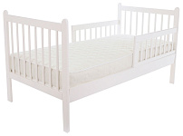 Одноярусная кровать предназначена для детей дошкольного и школьного возраста, с размером под матрац 160*80 см. Особенность модели – наличие заднего бортика - он предотвращает контакт с холодной стеной и одновременно защищает настенное покрытие от истирания. Вариант расположения передней и задней панели выбирается во время сборки. Бортики (3 шт) съемные – когда в нем отпадет необходимость, его можно убрать, высота бортиков 290 мм.