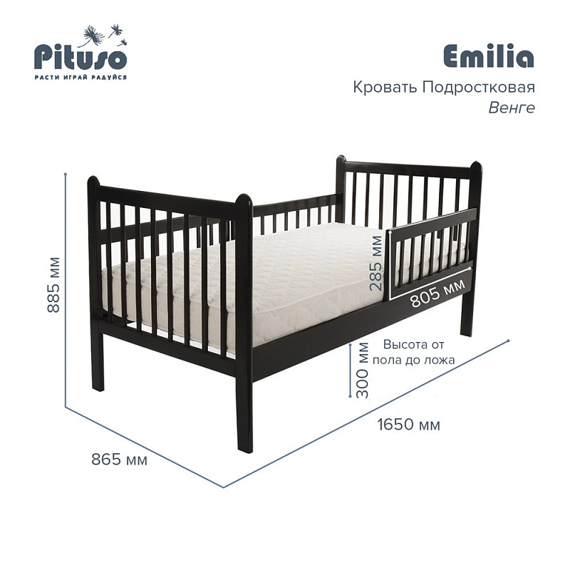 Высота ножек позволяет с легкостью производить ежедневную влажную уборку в детской комнате (высота от пола до ложа 30 см), допустимая нагрузка- 50 кг.