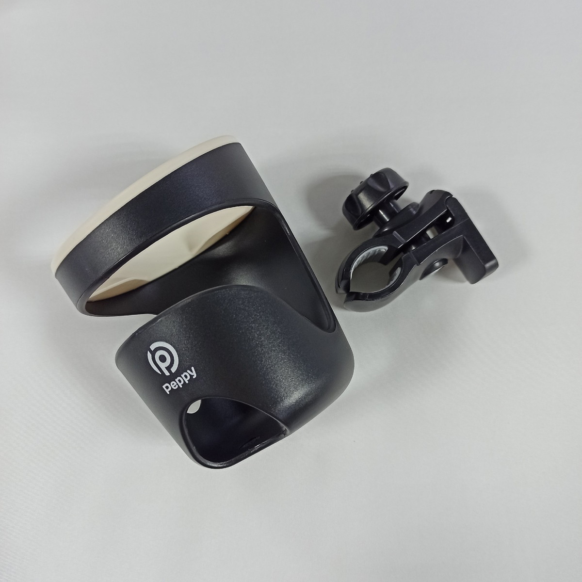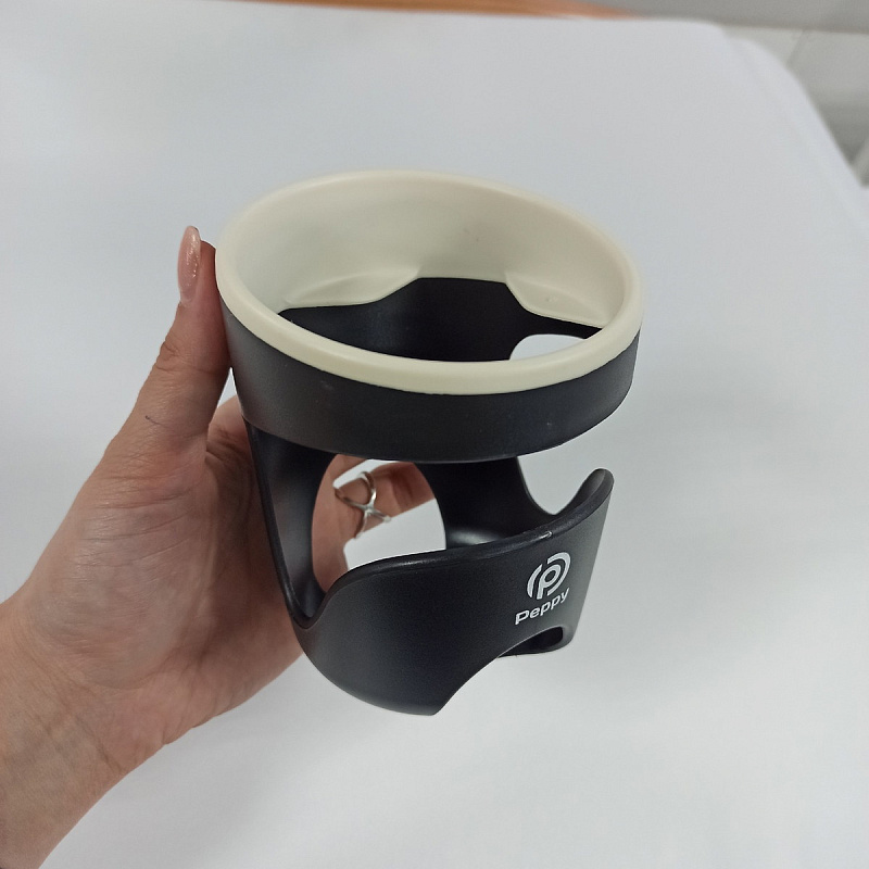 Подстаканник для коляски Peppy является очень удобным аксессуаром для мамы во время прогулки. В него можно установить поильник, детскую бутылочку или стакан кофе.