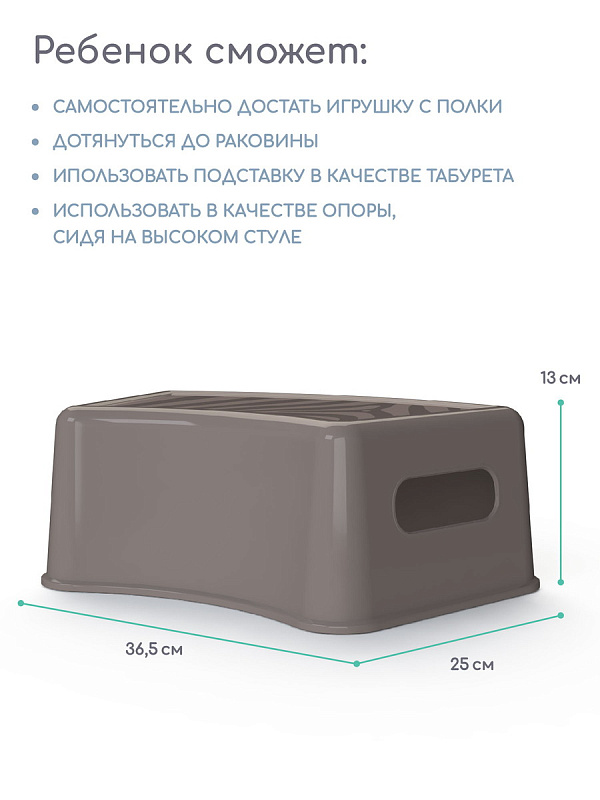 Подставка для ног AmaroBaby очень удобная и многофункциональная вещь для Вашего малыша. Подставка табурет лёгкая, ребёнок спокойно сможет сам переносить её в нужное место. Подставка для ног детская поможет малышу дотянуться до раковины во время умывания и чистки зубов, залезть самому на унитаз, достать с полки игрушку, дотянуться до выключателя. Подставку детскую можно использовать как стульчик во время игр. Ступенька детская очень устойчива, обтекаемой формы, без острых углов для безопасности ребёнка. Антискользящая поверхность детского стульчика, не позволят ножкам малыша соскользнуть. Подставки для ног детские AmaroBaby выглядят очень стильно благодаря модным, современным расцветкам. Подставка стульчик изготовлена из высококачественного, прочного пластика безопасного для ребенка. Подставка табурет подойдет как для мальчиков, так и для девочек. Материал абсолютно безопасен для малышей, не содержит BPA и PVC, имеет сертификат безопасности.