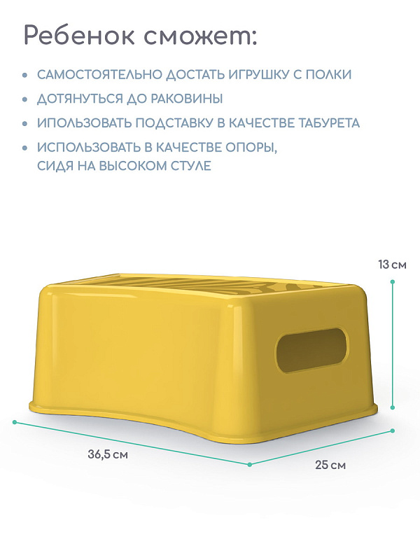 Подставка для ног AmaroBaby очень удобная и многофункциональная вещь для Вашего малыша. Подставка табурет лёгкая, ребёнок спокойно сможет сам переносить её в нужное место. Подставка для ног детская поможет малышу дотянуться до раковины во время умывания и чистки зубов, залезть самому на унитаз, достать с полки игрушку, дотянуться до выключателя. Подставку детскую можно использовать как стульчик во время игр. Ступенька детская очень устойчива, обтекаемой формы, без острых углов для безопасности ребёнка. Антискользящая поверхность детского стульчика, не позволят ножкам малыша соскользнуть. Подставки для ног детские AmaroBaby выглядят очень стильно благодаря модным, современным расцветкам. Подставка стульчик изготовлена из высококачественного, прочного пластика безопасного для ребенка. Подставка табурет подойдет как для мальчиков, так и для девочек. Материал абсолютно безопасен для малышей, не содержит BPA и PVC, имеет сертификат безопасности.