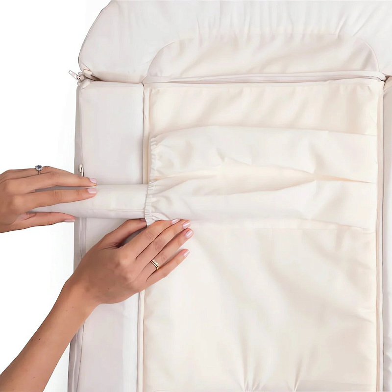 Когда малыш подрастёт, просто отстегните нижний бортик на молнии, чтобы он не мешал ножкам ребёнка. Верхний бортик также можно убрать, превратив кокон в коврик для игр. Вставки из 3D-сетки в самых чувствительных зонах служат для оптимальной циркуляции воздуха, предотвращая перегрев малыша. Chicco Mommy Pod оснащён съемным чехолом на молнии с водонепроницаемой вставкой в нижней части. Чехол легко стирается для поддержания идеальной чистоты.