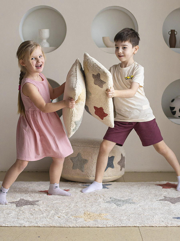 Эта очаровательная подушка “COLORFUL STARS” от Lillaland создана для того, чтобы дарить вашему малышу уют и комфорт во время отдыха.