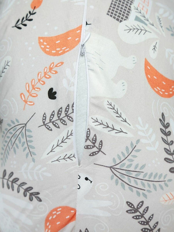 Внешний чехол на потайной молнии, которая расположена посередине внешней дуги, сшит из бязи.