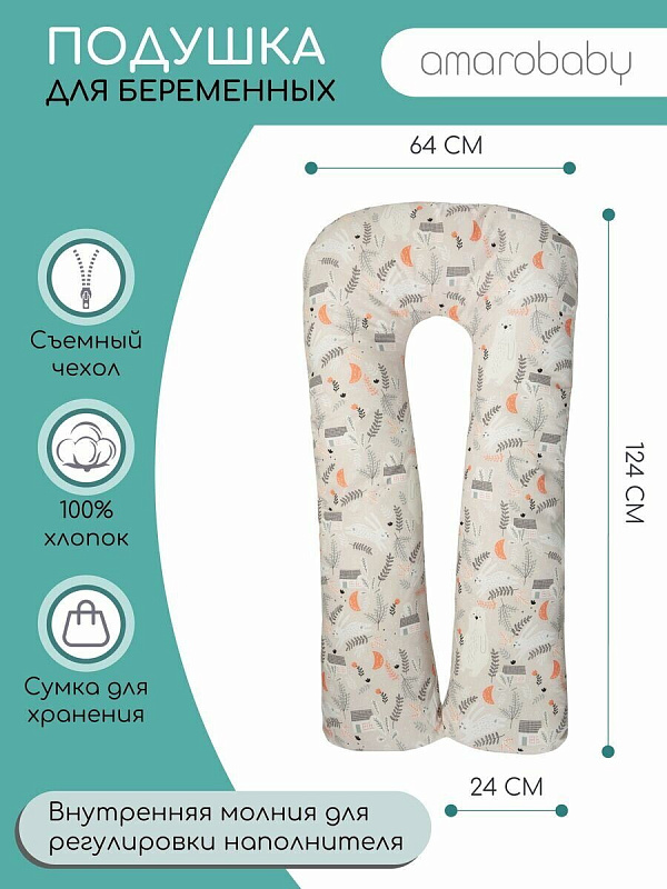 Подушка для беременных AmaroBaby U-образная 340х35 см лес белый